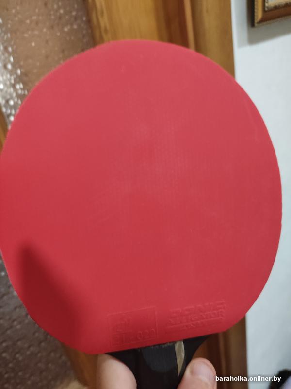 Также продаю более медленную ракетку: основание Sanwei CC, накладки Joola Vizon. Бюджетное основание с карбоном, довольно быстрое и жесткое, и классические мягкие европейки (как пишет производитель), слегка липкие и весьма цепкие, но не быстрые. Вес около 180 гр. Основание с минимальным износом, накладки - несколько тренировок. Ракетка вышла больше для игры вторым номером - блоки, активная подставка, подрезки и т.д. Кроме того, ракетка неплохо подойдет для отработки базовой техники или как тренировочная.