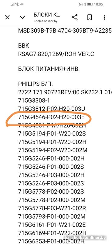 Интересует БП от Филипс 42pfl4606 цена