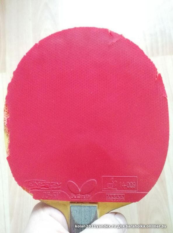 - Накладка Tenergy 05 fx красная, макс. б/у 1 год, состояние 6/10, ссылка потрепана по бокам, были зацепы о стол, игровое пятно в хорошем состоянии. Отдельно цена 15 руб.Стоимость комплекта 100 руб.