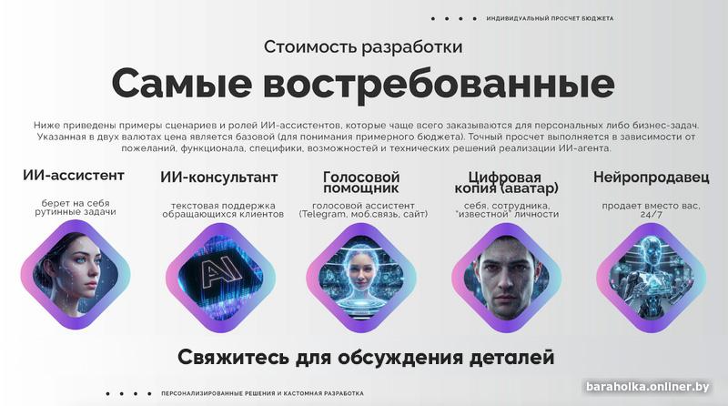 Комплексное внедрение интеллектуальных программных решений, которым посредством заданных установок и инструкций передается выполнение рутинных и трудоемких задач вашей компании. ИИ-агенты способны обрабатывать запросы клиентов, управлять документооборотом, анализировать большие объемы данных, оптимизировать процессы продаж и логистики, а также выполнять множество других задач без участия человека. В результате существенно повышается скорость и качество работы, снижаются финансовые издержки (в том числе на оплату труда такого рода специалистов: менеджеры, операторы) и минимизируется человеческий фактор.