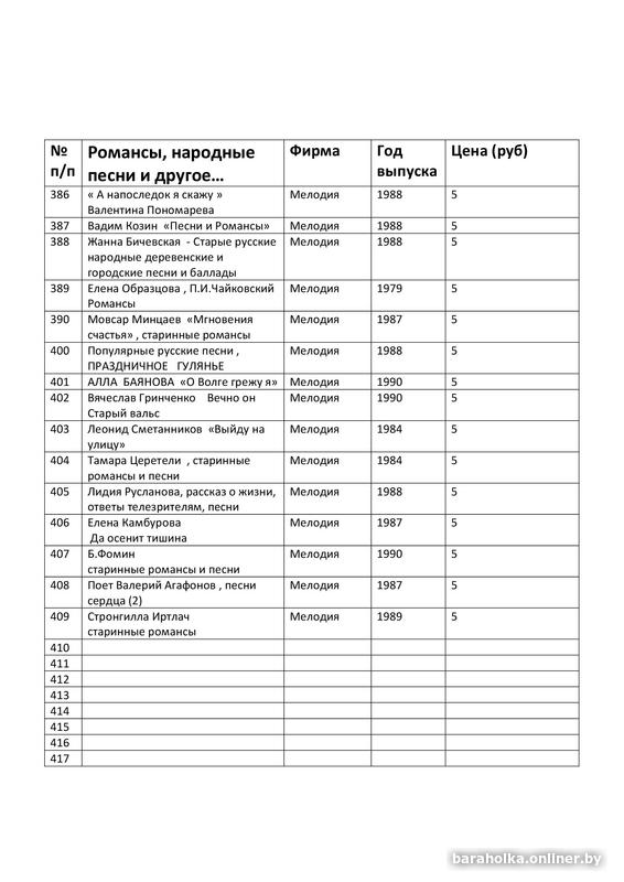 ПРОДАЖА ВИНИЛА !!!! Вся фонотека и цены указаны в таблицах. Фотографии интересующих пластинок и все таблицы могу выслать на электронную почту. Кроме того в наличии много пластинок в качестве "Декор" (большие- 30 см, средние- 25 см, маленькие - 17 см) по цене 1руб за штуку.