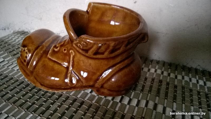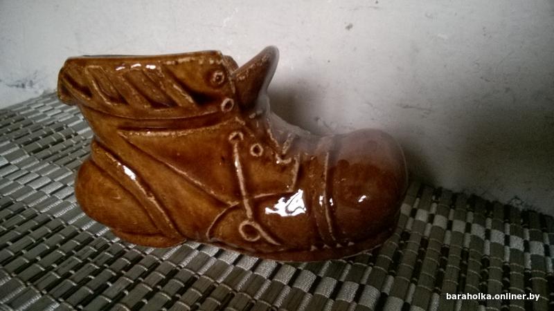 Керамический башмак для мелочей (пепельница). Обливная керамика. СССР.30 р