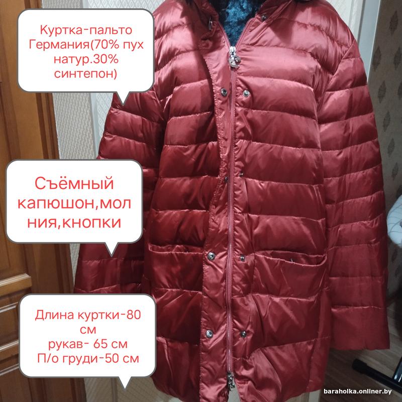 1) Куртка-пальто зима(очень теплое и не тяжелое на размер 48-52,рост 165-175 см.Длина по спинке от ворота до низа куртки-90 см.Длина рукава- 68 см.