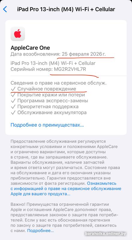 Официальная платная расширенная гарантия AppleCare One до 25.03.2026. Поддерживается и обслуживается по серийному номеру, у официальных представителей Apple.