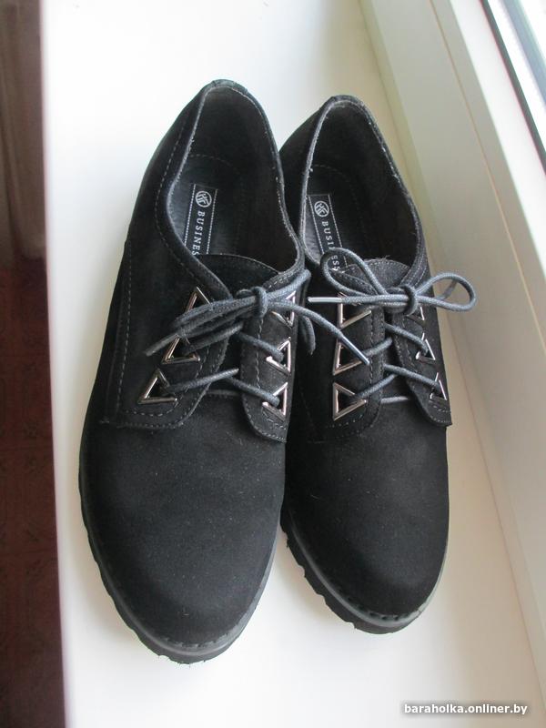 Туфли черные закрытые, замшевые, как новые, носили в качестве сменной обуви в школе 3-4 дня, купили заранее, в сентябре оказались маловаты, пришлось срочно покупать побольше.