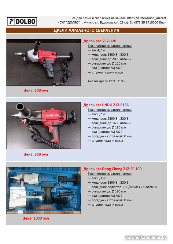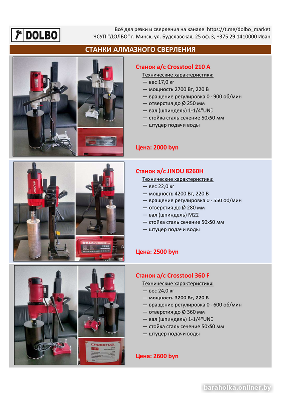 - с/без подачи воды, возможно сверление с микроударом.