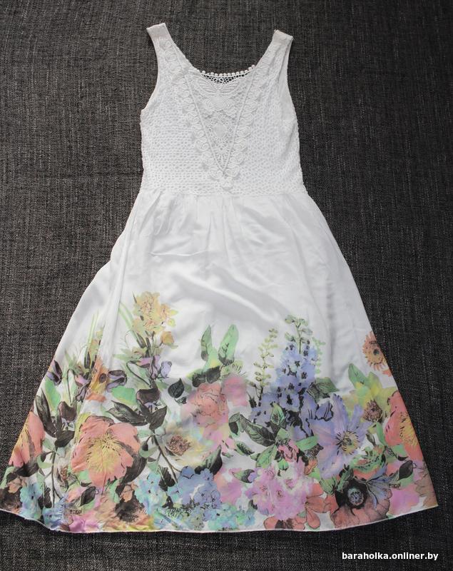 Платье белое хлопок, с бабочками и цветами,р 44-46