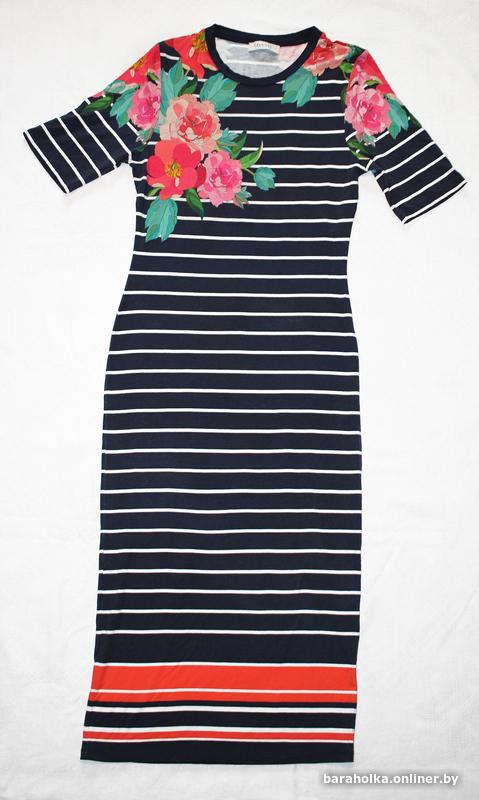 1. Платье в морскую полоску Oasis с цветами, по фигуре, мягкое, эластичное, хорошо тянется