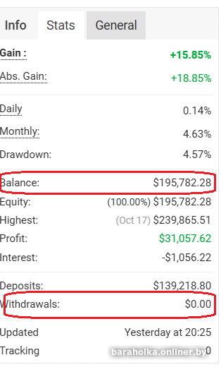 Вывод прибыли выводим раз в месяц.Прибыль делим 50/50, средства у вас на счету.