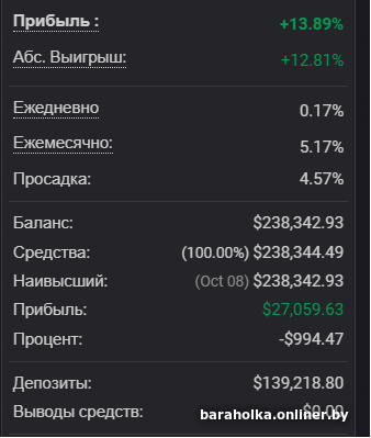 Робот сейчас работает на реальном счете с депозитом 210.000$.