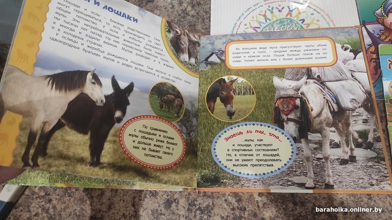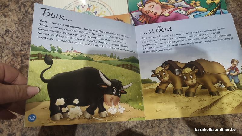 "Животные фермы" - самая первая энциклопедия, очень реалистичные картинки, некоторых нет, малышка оставила себе).