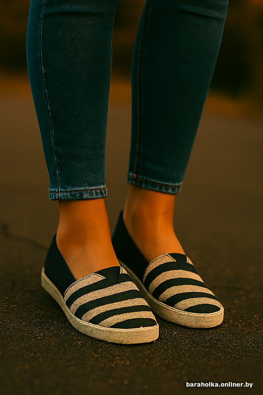 Лёгкие и удобные балетки-слипоны с полосатым дизайном. Универсальный стиль — подойдут для прогулок, поездок и повседневной носки. Мягкая внутренняя отделка, дышащий материал.