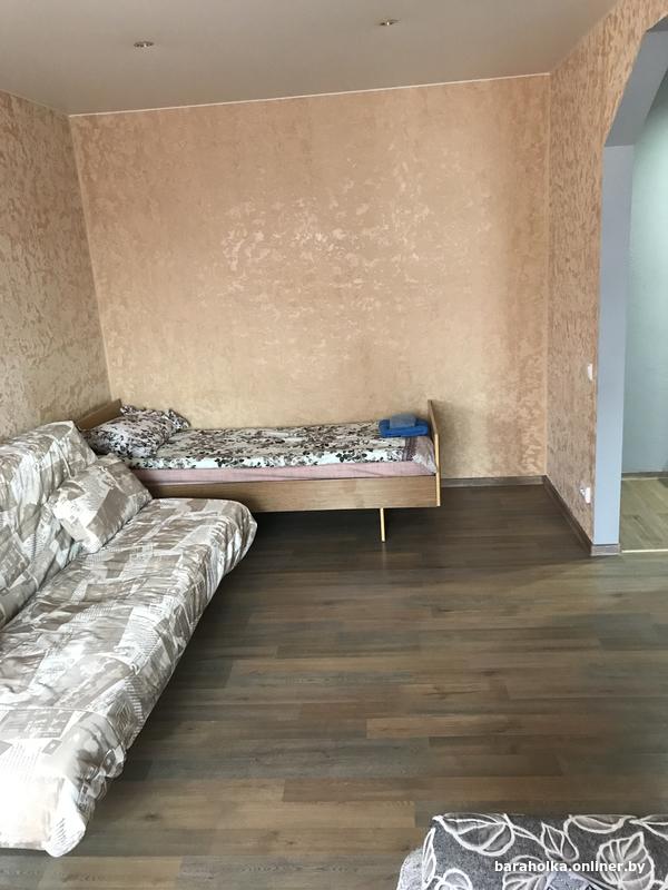 Сдается посуточно современная, уютная, чистая 2-комнатная квартира на 3 этаже от собственника. В квартире есть все для комфортного проживания. В квартире имеются : кровать двуспальная, диван-кровать, тахта двуспальная, кровать односпальная (2+2+2+1), безлимитный интернет (Wi-Fi), TV, ZALA, утюг, фен, стиральная машина, сушилка для белья, на кухне имеются микроволновая печь, газовая плита, холодильник, электрочайник, кофеварка капельная, столовые приборы и посуда, соль, сахар. Каждому гостю предоставляется комплект полотенец, постельное белье. Удобное расположение, окна выходят во двор, тихие соседи, во дворе имеется парковка, рядом автобусные остановочные пункты, в шаговой доступности магазины (Маяк, Светофор), АЗС Белоруснефть, аквапарк “Жемчужина”, кафе. Сопровождение всеми отчетными документами. Наличный, безналичный расчет. Стоимость может варьироваться от количества гостей и количества дней проживания.