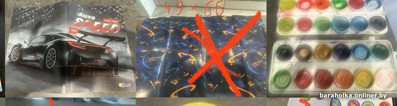 Канцтовары б/у: стакан непроливайка 2 руб за оба, гуашь 1 руб, акварель краски 0,50 коп, наклейки разные -5 руб за все, клеенка для трудов и рисования 2 руб, коврик для лепки с машиной 3 руб, коврик для стола с дорогами 3 рубМинск