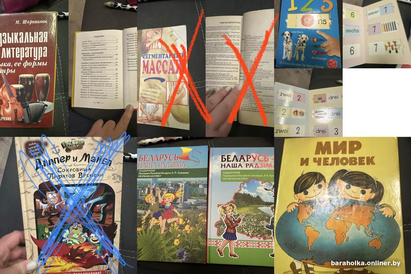 Музыкальна литература М. Шорникова -10 руб, книга по немецкому для детей с картинками-15 р, , Беларусь наша радзима, человек и мир ( есть дефект ) -5 руб. энциклопедия доя детей 10 руб есть небольшой дефект, гэта ўсё радзіма наша -3 р