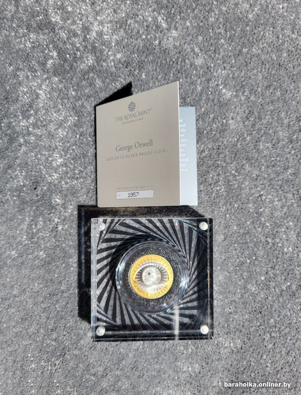 Продаю официальную серебряную коллекционную монету 2025 года выпуска, посвящённую Джорджу Оруэллу — одному из самых влиятельных писателей XX века.