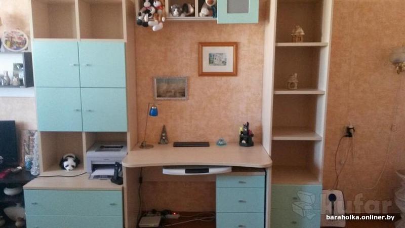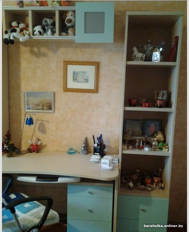 - письменный стол () с выдвижной полкой для клавиатуры и передвижной тумбочкой на колесиках (640/400/250) = 450 руб;