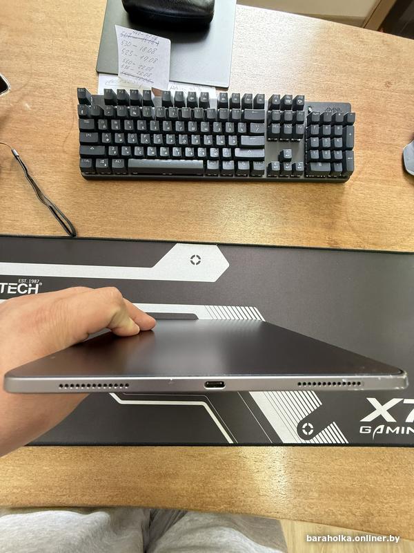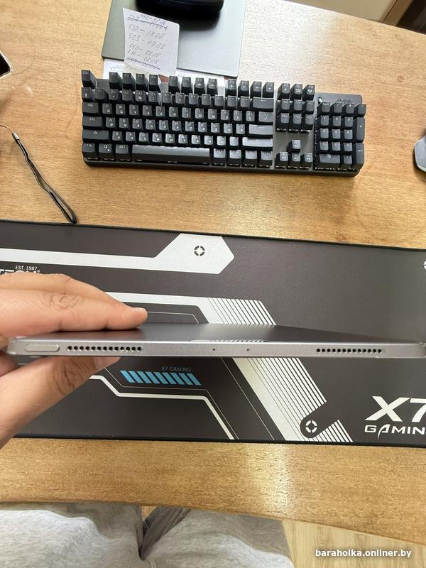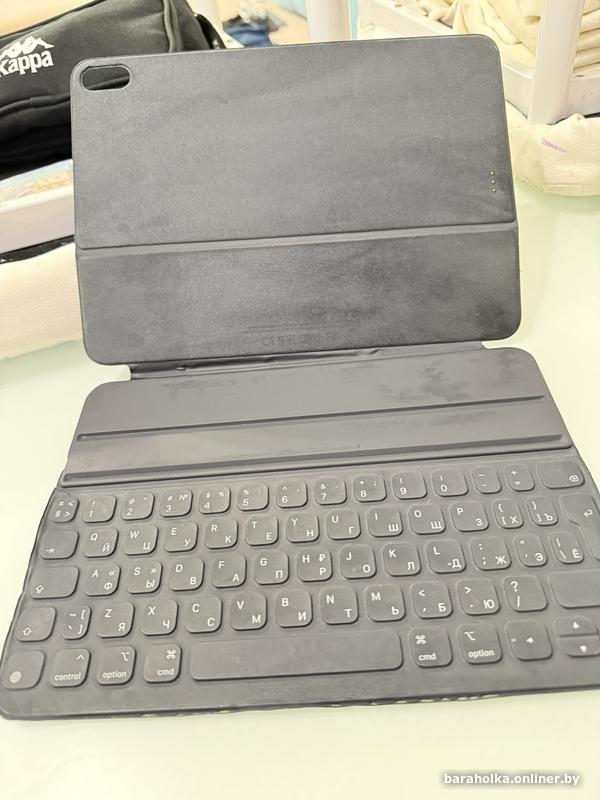 В комплекте с оригинальной чехлом-клавиатурой (слева имеется небольшое отклеивание, но клавиатура полностью рабочая).
