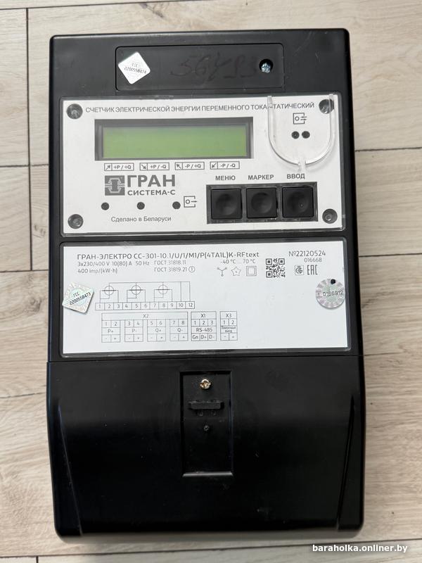 Счетчик ГРАН-ЭЛЕКТРО СС-301-10.1/U/1/M1/P(4TA1L)K-RFtext, б/у, 3-фазный, поверенный в 2022 году.