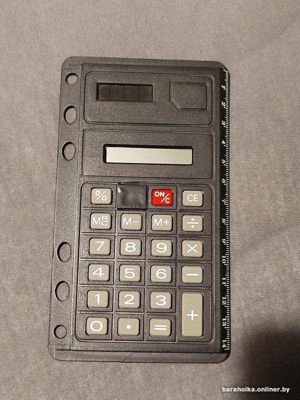 Дополнительно отдам б/у калькулятор-линейку, который можно вставить в петли. В нет батарейки, отсутствует кнопка квадратного корня и 2 болта (4 и 5 фото).