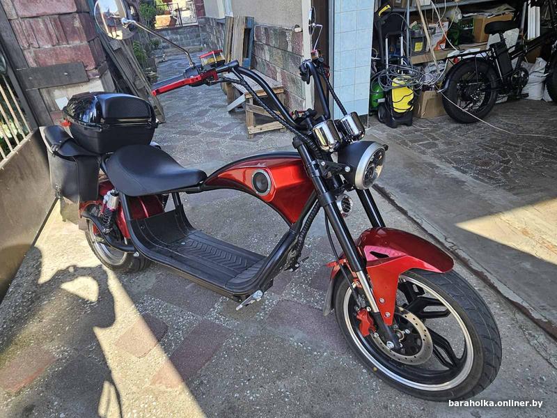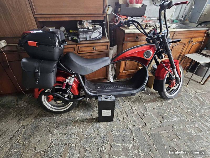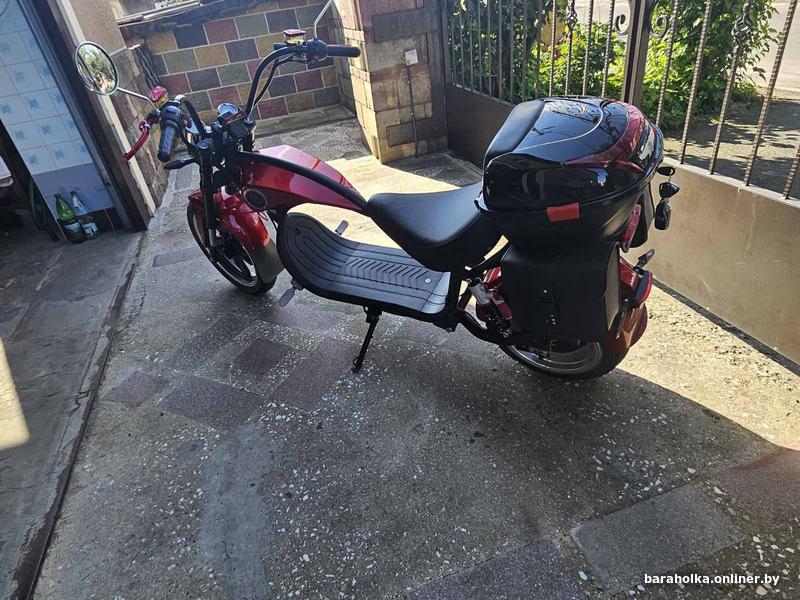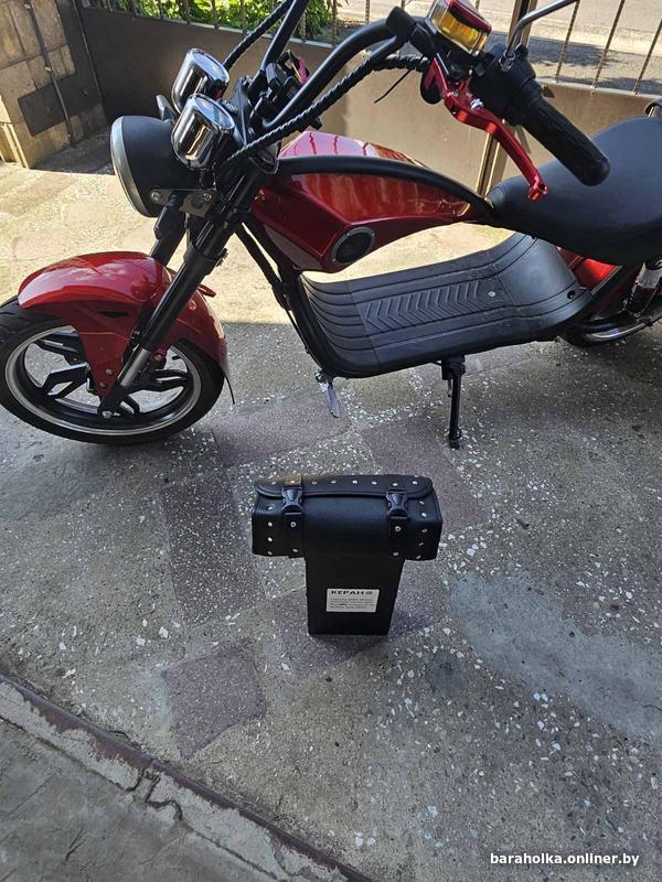 Покупал зимой за дорого, состояние нового см, на фото резины, продаю т.к. нет времени для покатушек.. В комплекте ещё одна новая батарея на 60 вольт 30 А. Хранится в тёплом гараже. Сделана полная гидроизоляция, поставлен брызговик на переднее колесо и добавлен стопарь на заднее крыло,. Bluetooth и зарядка телефона есть, динамики на бензобаке со светомузыкой, есть звуковая имитация мотоцикла, аппарат достойный рекомендую! По Минску и области помогу с доставкой!
