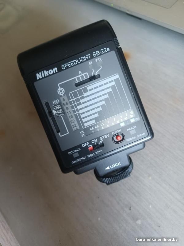 Nikon SB-22. Фотовспышка из пленочной эры. Но будут работать и на цифровых камерах, только не в ТТЛ-режиме. У вспышки поворотная голова и выдвижные светоотражатель и рассеиватель. Состояние рабочее.