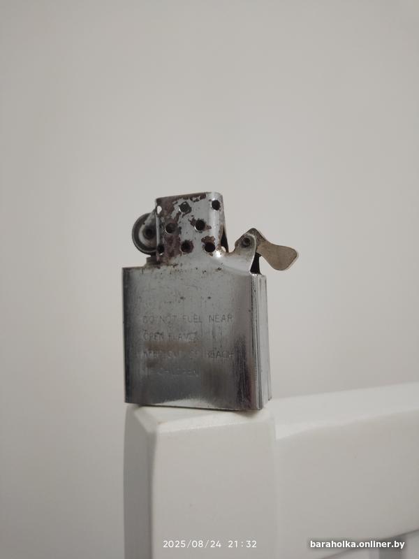 Продаю бензиновую зажигалку Zippo. В приемлимом состоянии. Оригинал или нет сказать не могу, т.к. не разбираюсь. Искру даёт нормальную. Проверить работоспособность нет возможности, т.к. нет оригинального бензина, а заправлять чем попало нет желания. На реставрацию или на запчасти. Почтой вышлю.