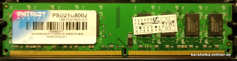 • Patriot Memory 1 ГБ DDR2 800 МГц DIMM CL5 PSD21G8002 - 1 шт.Минск