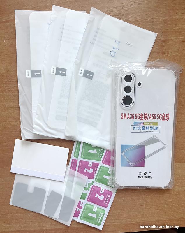 Набор для Samsung A56. Покупал для себя, но не купил телефон). Продам весь комплект! Чехол силикон-антиудар, 3 гидрогелевые пленки, салфетки+ скребок+ не знаю что)