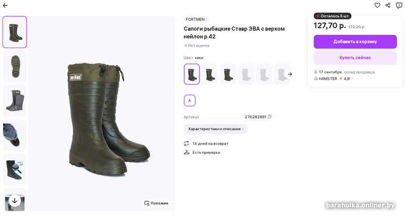 Высокие мужские водонепроницаемые сапоги из ЭВА. Новые. Цвет - хаки. Длина по стельке: левый - 295 мм, правый - 285 мм. Высота: правый - 345 мм, левый - 340 мм. Сапоги пустые: без утеплителя, манжет и чулок. Отправляю почтой/европочтой (доставка за счет получателя). Цена окончательная, без торга. По Минску - самовывоз.