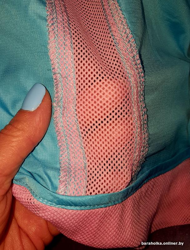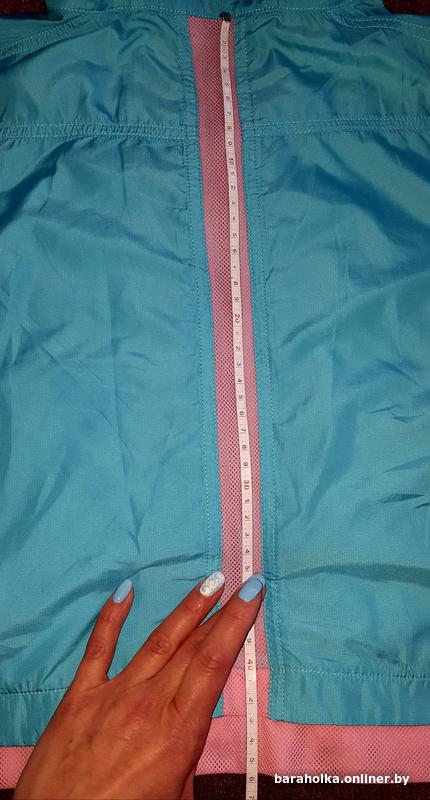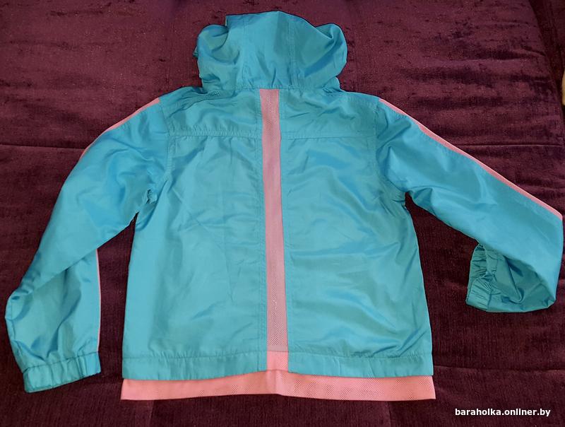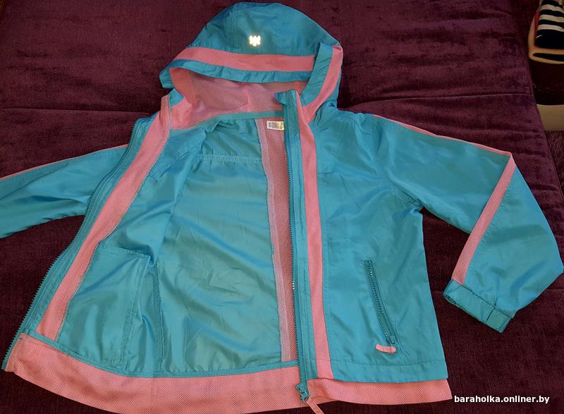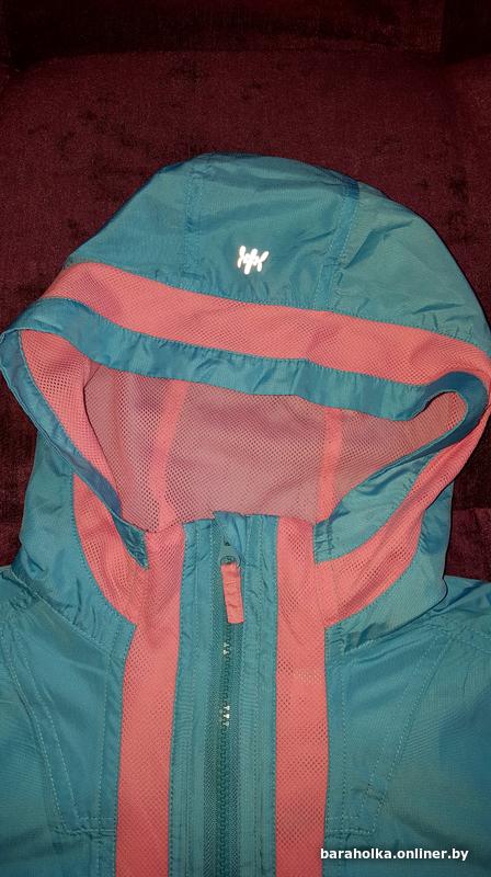 Продам ветровку на девочку, рост 140-146, из лёгкой ткани нежно-голубого цвета, на молнии, с капюшоном, есть 2 боковых кармана на молнии. Сзади на капюшоне есть фликер. Вставки розового цвета из сетчатого материала.