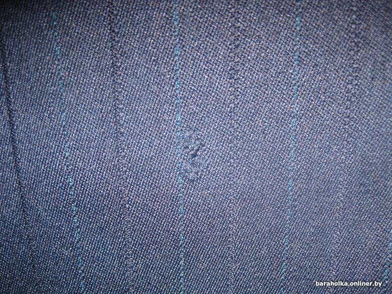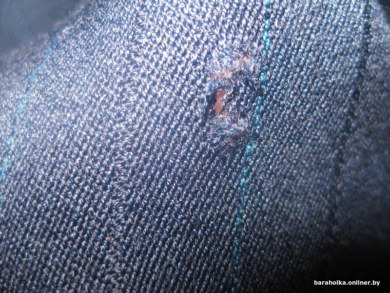 Брюки в целом в хорошем состоянии, но есть дефект (смотрите фото) : на одной колошине спереди на высоте