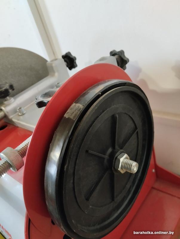 Оригинальный ремень на барабане (смотрим фото), который примыкает к ведущему валу и приводит в действие точильный и полировальный диски износился. Приколхозил свое. В умелых руках можно сделать на свое усмотрение.