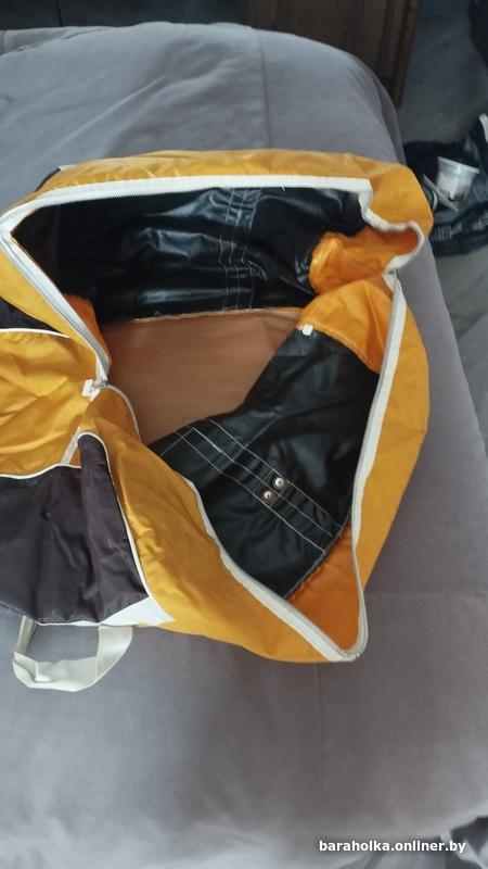 тоит из одного отделения, закрывающегося на застежку молнию. По бокам с двух сторон снаружи карманы. Длина -65см; высота – 48см; ширина - 28см.
