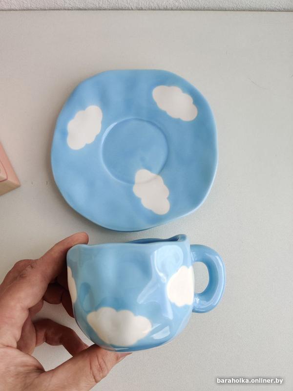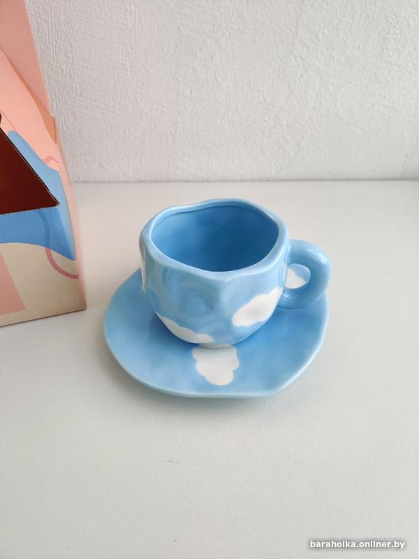 Новая чашка с блюдцем "Облака". Цена на WB 29 рублей