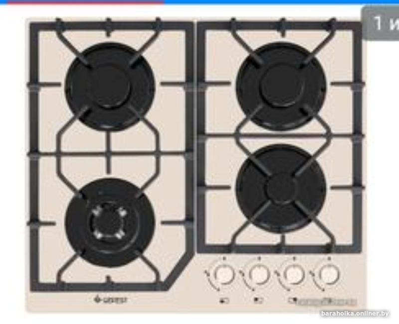 газовая на 4 конфорки, закаленное стекло, мощность: 7700 Вт, автоматический электроподжиг, газ-контроль, решетки: чугун, независимая установка, размеры (ШхГ): 60x52.5 см