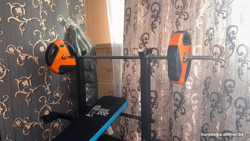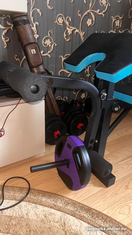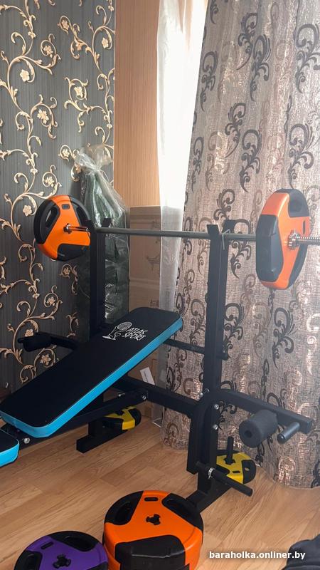 • Стойка со скамьей;гриф;блины пластик-4*10кг, 2*5кг, 2*2,5кг;Слоним