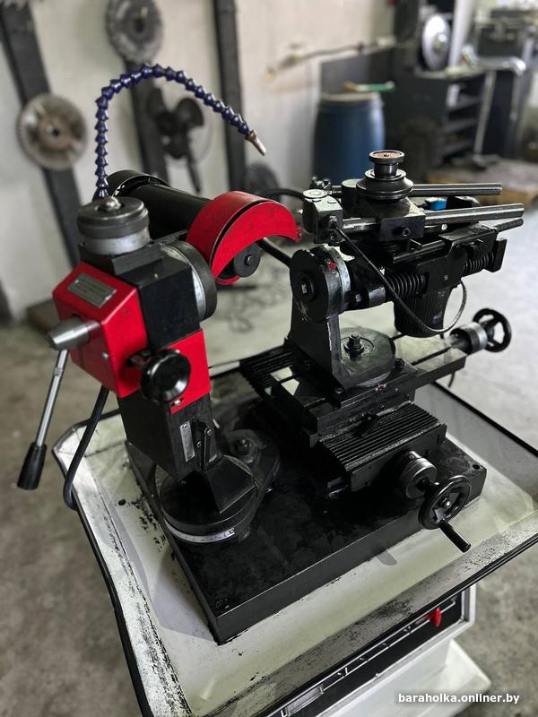 Станок оснащен приспособлением, позволяющим затачивать дисковые пилы наружным диаметром 100-140 мм