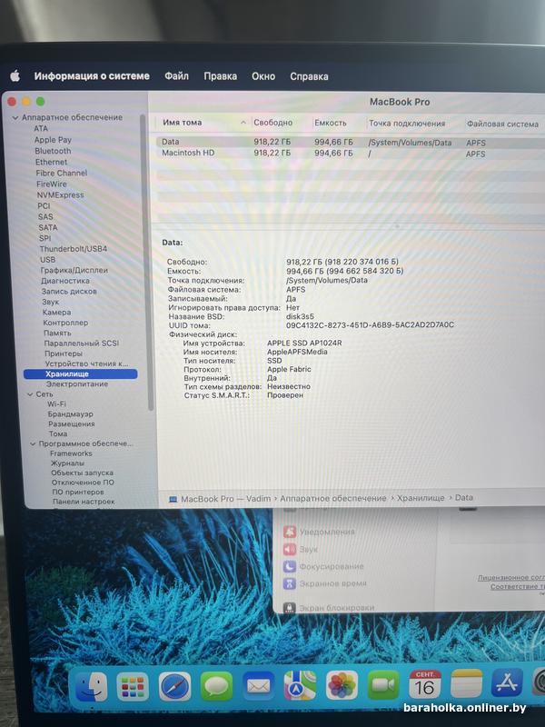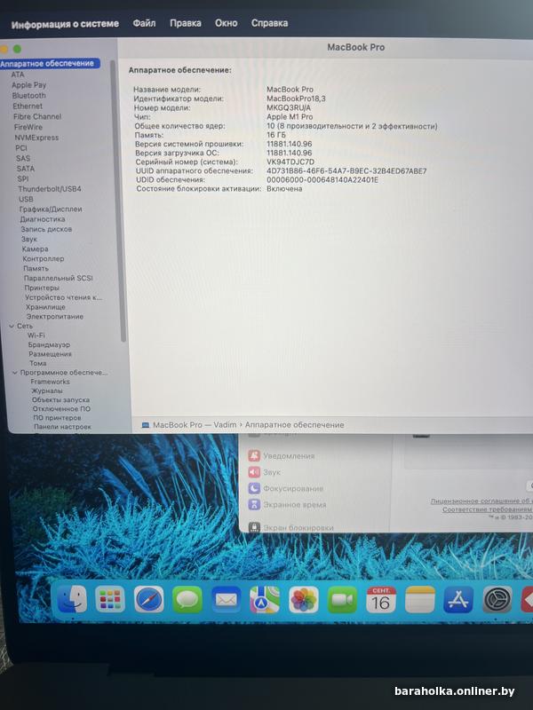 • Ноутбук Apple Macbook Pro 14" M1 Pro Куплен на А1 винчестер SDD 1T Совсем не пользовался Отличное состояниеМинск