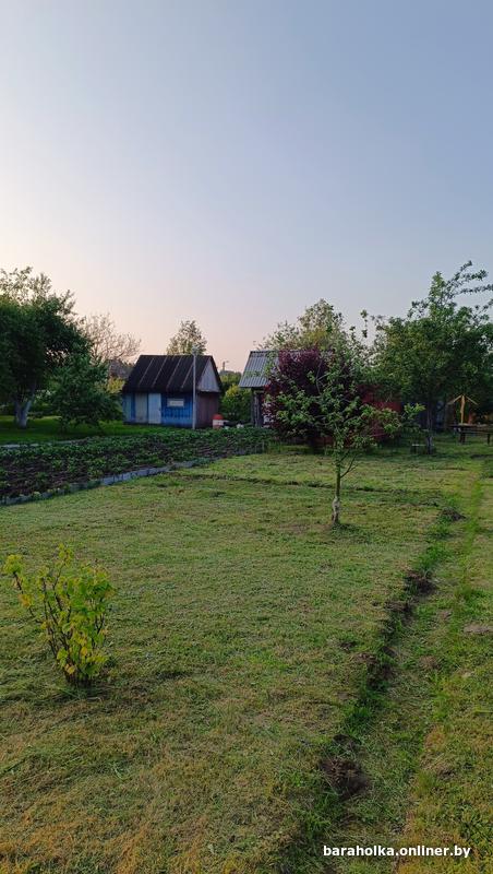 Участок ровный, без перепадов рельефа. На участке большой железный контейнер для хранения инвентаря, водопровод(вода сезонная), электричество. Есть газон, грядки. На участке растут плодовые деревья (яблони, сливы, вишня, фундук) и кустарники (смородина черная, малина садовая и ремонтантная).