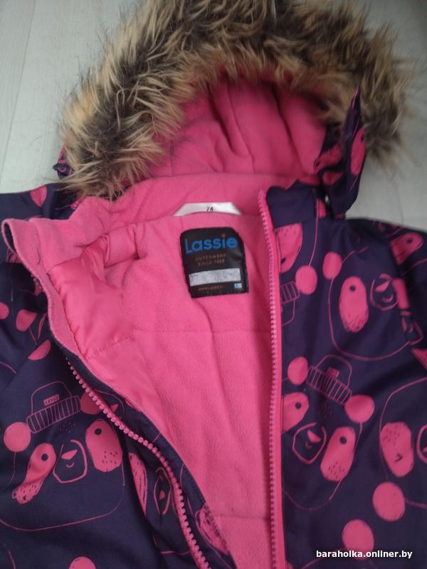 Комбинезон на улицу для девочки Lassie демисезонный, еврозима. Температурный режим от+10 до -10. Ткань мембрана, водонепроницаемая и ветронепродуваемая. Капюшон и мех отстёгиваются. Рост 74- 80. Б/у одним ребенком. В хорошем состоянии, единственное есть нюанс. Сзади на попе в зоне шва есть небольшая протёртость краски, НЕ ткани! Так произошло, потому что использовали его когда ездили в коляске. Но это легко закамуфлировать ( можно закрасить протёртость фиолетовым фломастером по шву), смотрите последнее фото. В остальном всё отлично. 20руб.