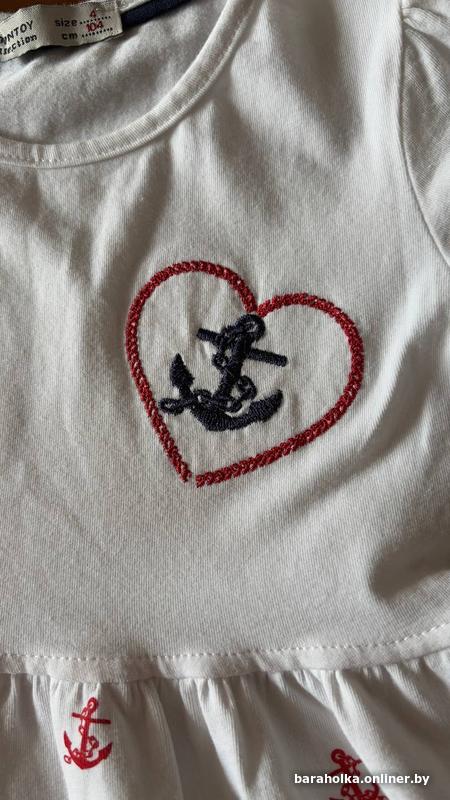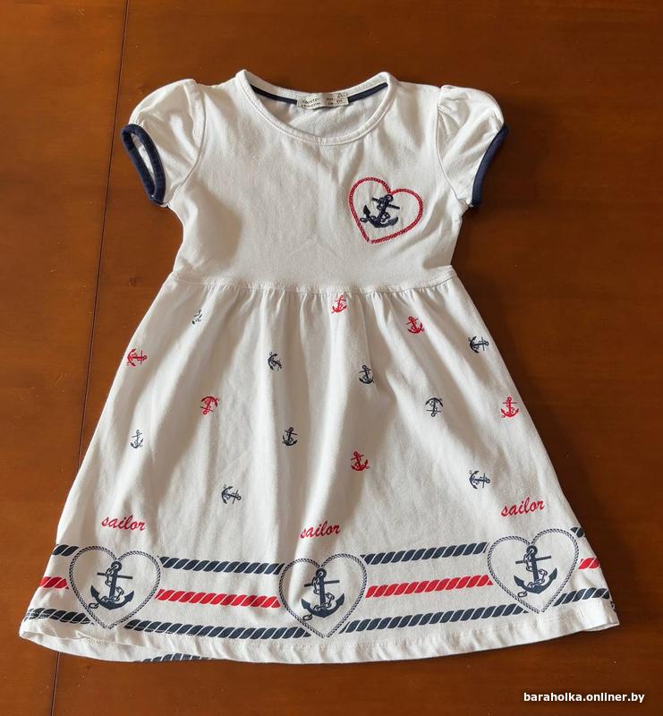 Продам платье на девочку. Размер 98-104 см. Состояние новой вещи, без дефектов. Морская тематика, вышиты якоря. Хлопок.