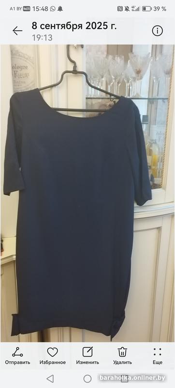 Платье из синей плотной ткани с ажурной спиной до бюстгальтера и бабочками по бокам. 48 размер.