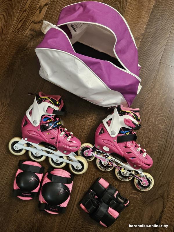 Подростковые роликовые коньки Relmax, сумка и защита. Размер и состояние на фото.