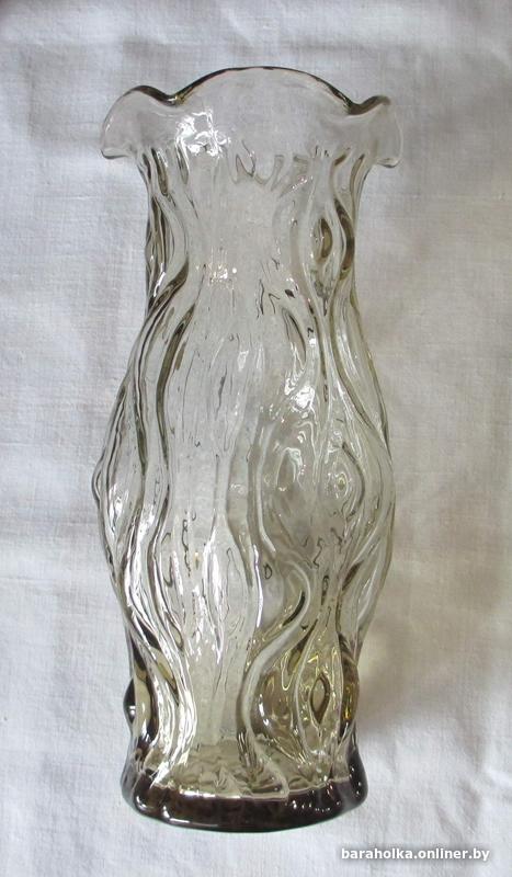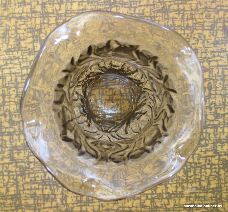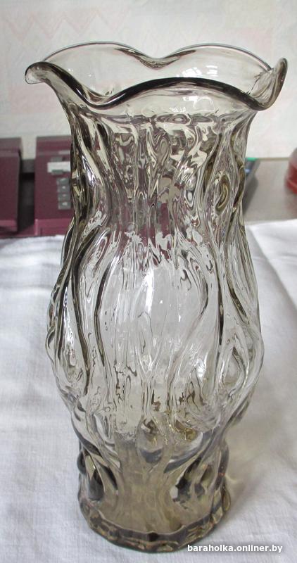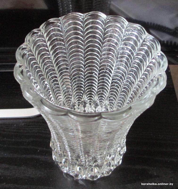 1. Фото 1-2. Стеклянная ваза волнами. Высота 14,5 см, диаметр вверху 11см. Цена 18 руб.