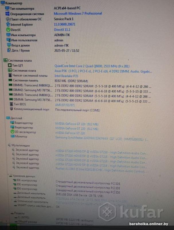 Система готовая для школьнеа все отлично работает - на данной конфигурации можно запускать старенькие игры типа Doom 3, Need for Speed : most Wanted , Serios Sam, GTA3, STALKER. Лично проверял. Продается как есть . В комплекте монитор 17 дюймов - отличное изображение. Процессор Intel Q6600 - 4 ядра /4 потока - 2.6 гГц - работает стабильно. Винчестер на 250 гб. Старичок но ещё что-то может - в интернет выйти и посмотреть Ютуб, видео какое нибудь. Из минусов потерялась кнопка - но включается и так . Из плюсов клавиатура в подарок.