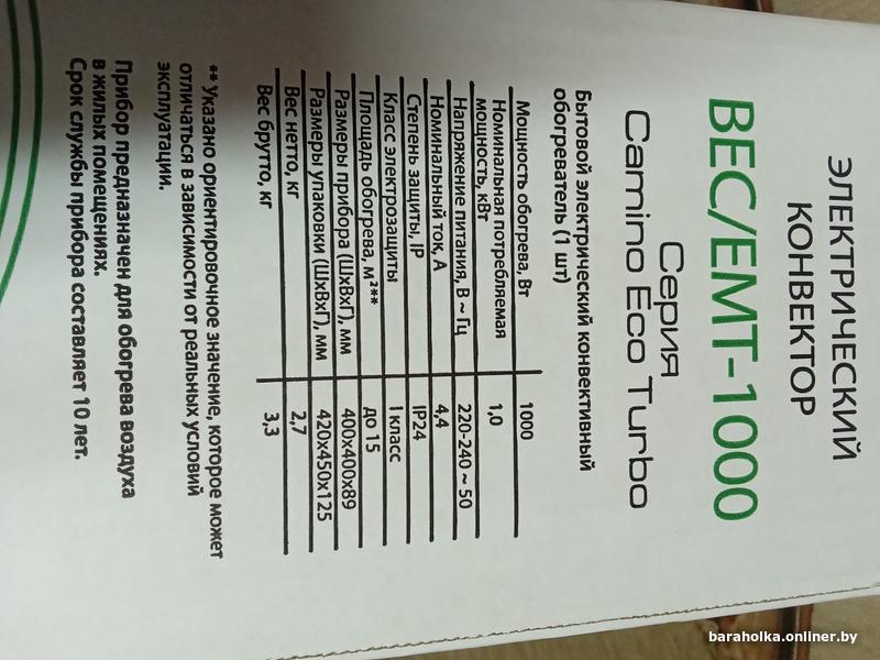 Продаю конвектор BALLU CAMINO ECO TURBO 1000Вт, самый современный Х-образный монолитный нагревательный элемент HEDGEHOG, ресурс работы 25лет, быстрый экономный нагрев каминного эффекта без запаха и шума, влагозащитный корпус степень защиты IP-24, защита от перегрева опрокидывания автоотключение, компактные размеры, производство Россия, новый в упаковке, гарантия 3года, возможно доставка тел 8 025 7868085