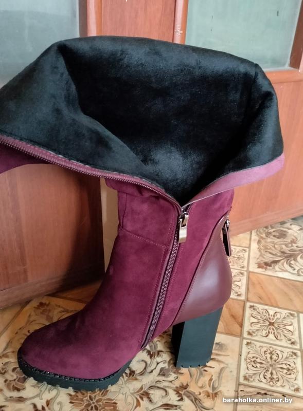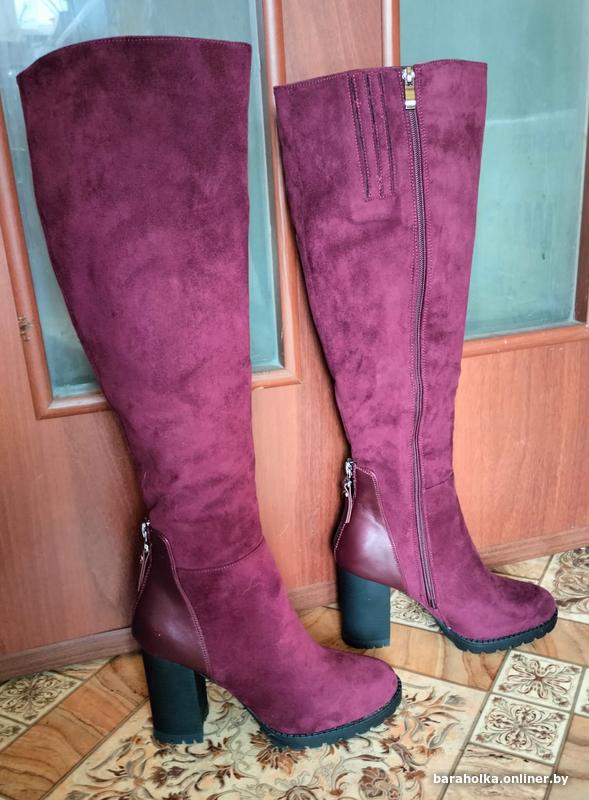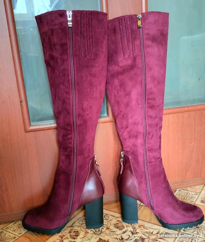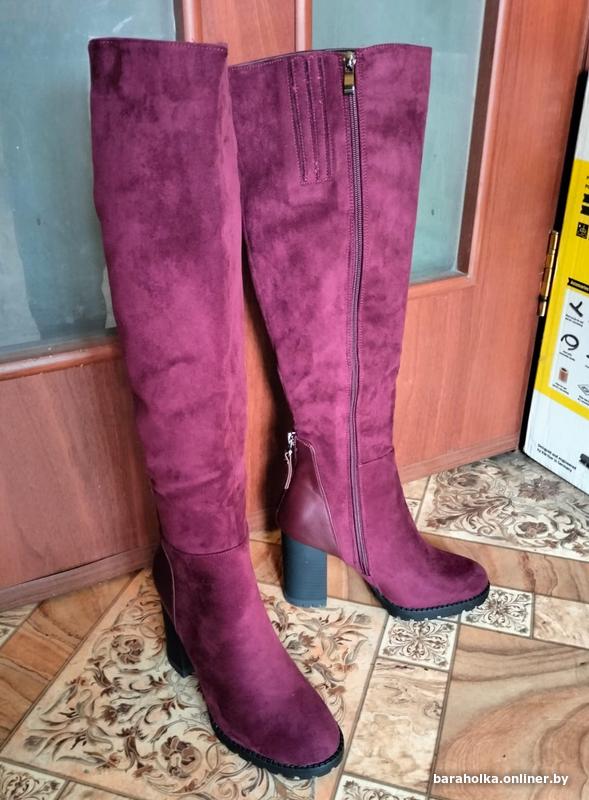 Демисезонные женские замшевые сапоги новые р.37,на молнии,с подкладкой из цигейки,цвет бордовый,каблук-9 см,высота сапог с каблуком-52 см,объём голенища-36 см,на среднюю ногу.Причина продажи-не подошел размер.Территориально ул.Комарова,на смс не отвечаю,все вопросы только по телефону. +37529-724-34-15