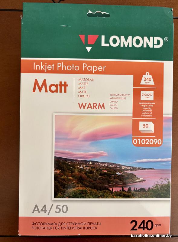 3) Mатовая фотобумага, плотность 240 г/кв.м, A4, струйная печать, 50 листов(0102090) -26 р пачка (2шт.)