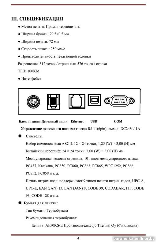 • Совместимость с ESC/POS, драйверами для Windows, Linux, Android (SDK при поставке/по запросу).